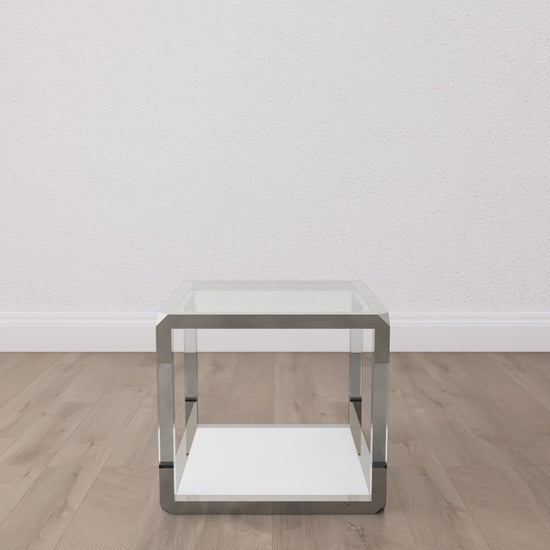 Jasper End Table in Acrylic, White Glass and Polished Stainless Steel