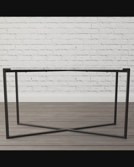 Nature, meet industry. The Saxon collection’s authentic Carrara marble top is cradled by black powder-coated metal legs for an organic, contrast-driven look that embodies contemporary appeal. Natural grey veining in the marble gives each table its unique character, ensuring no two pieces are alike.
