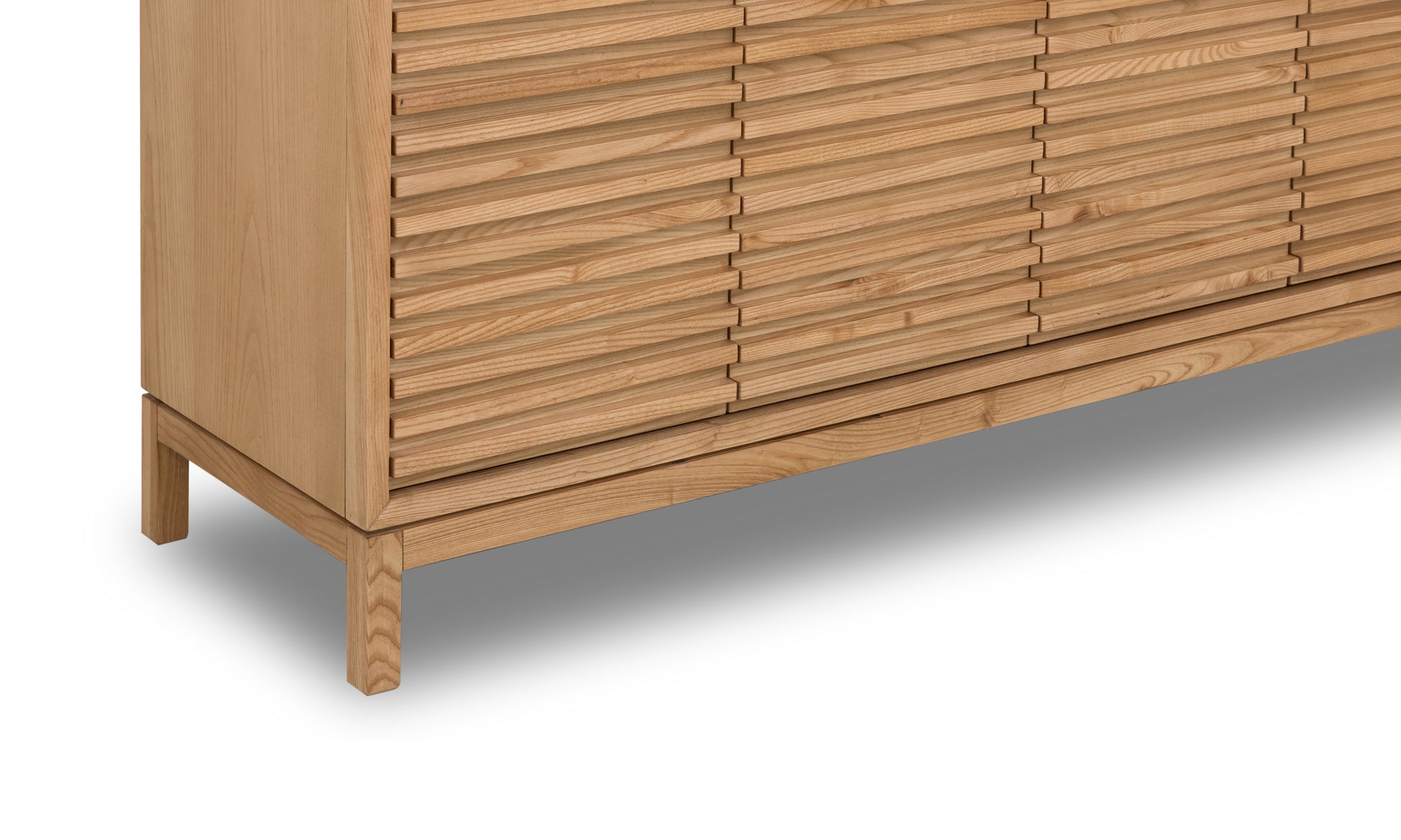 The Tanner collection is the perfect embodiment of the Japandi design aesthetic, a beautiful blend of Scandinavian minimalism and Japanese warmth. Featuring solid ash fronts and frames, this slatted bedroom collection exudes a calming and inviting atmosphere. Available in modern earthy brown Roux and natural-tone Flaxen finishes