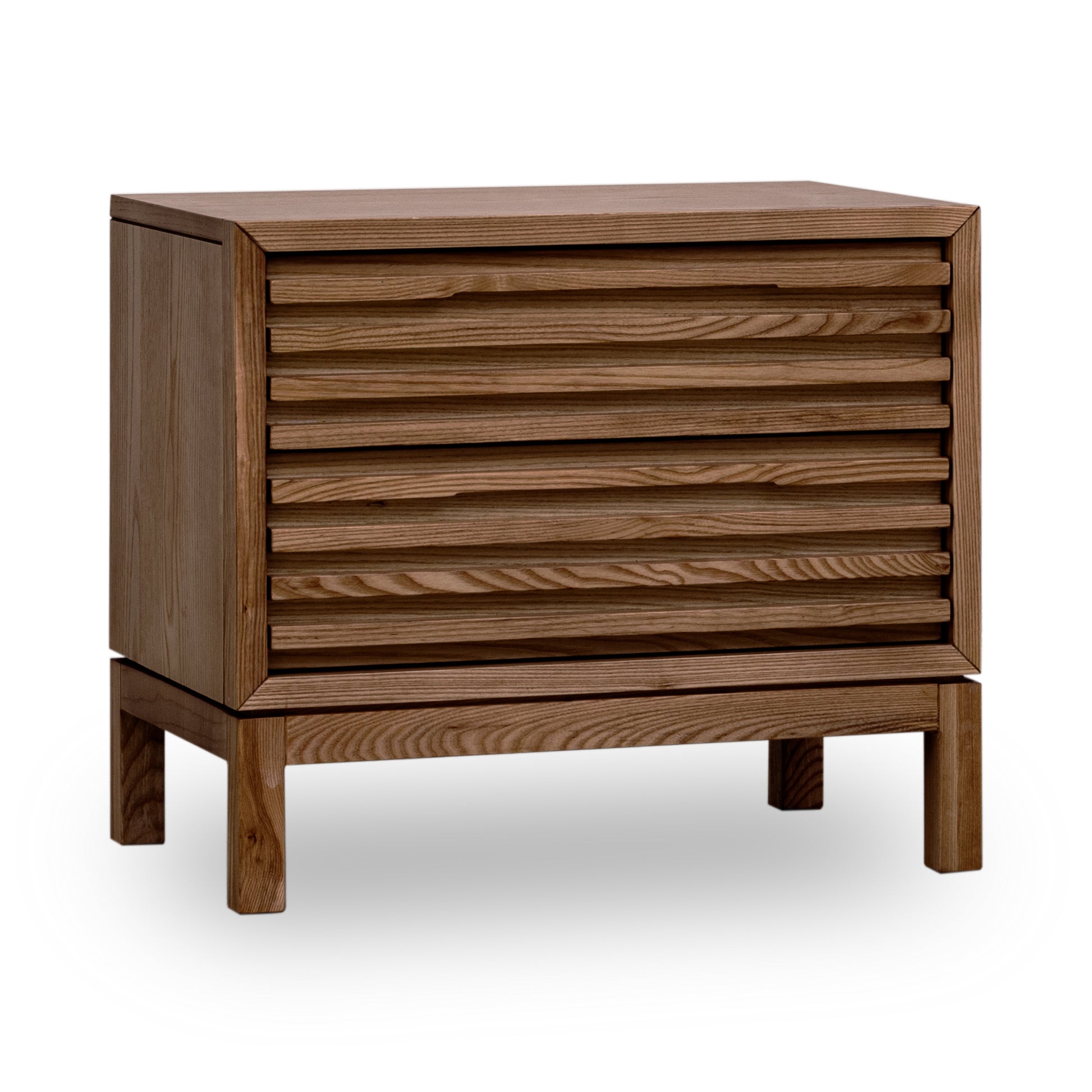 - Slatted fronts are made entirely of solid Ash with Ash wood veneer panel surfaces