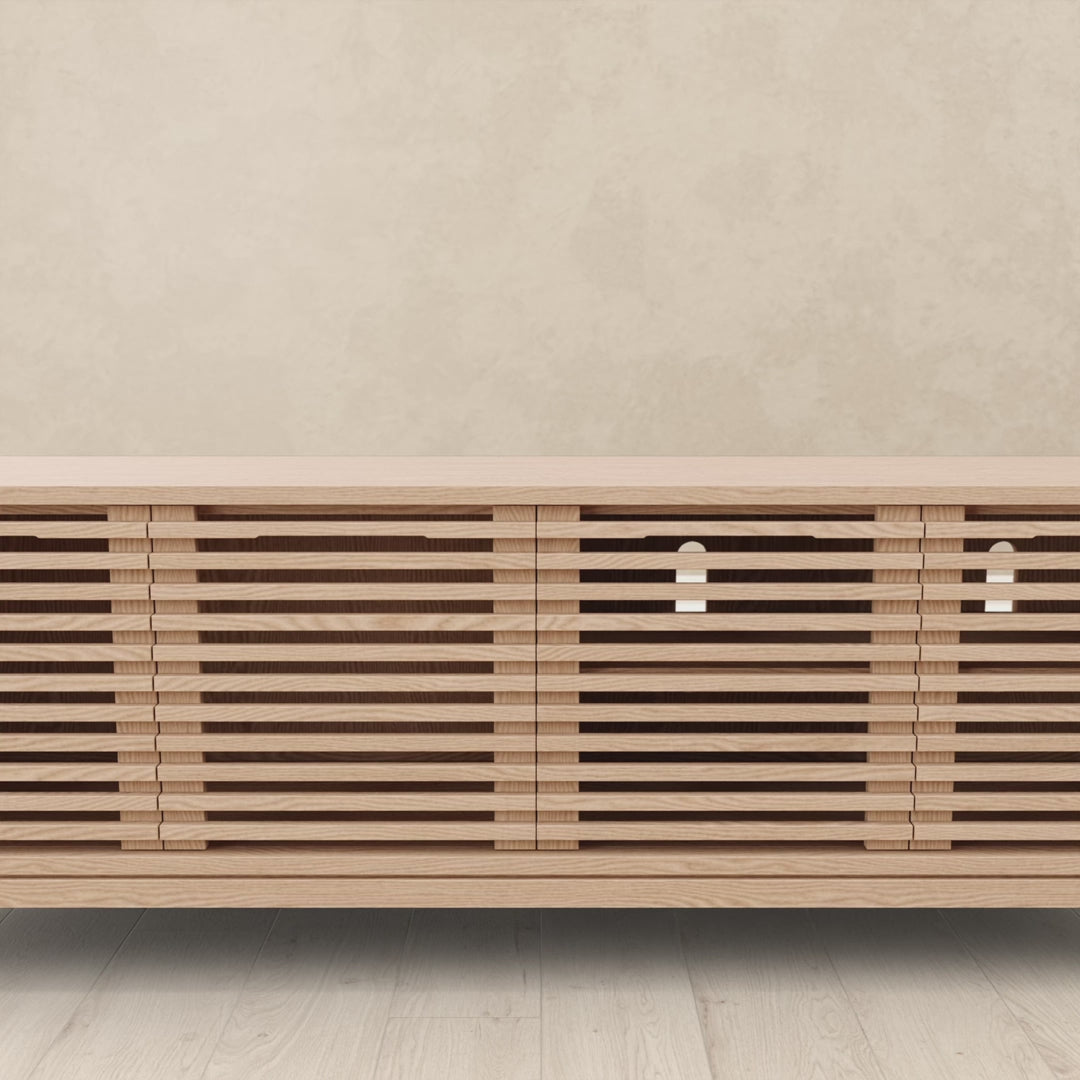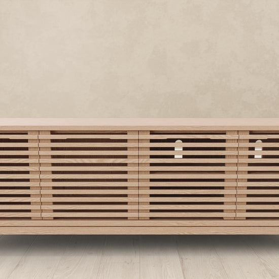 Viertürige Tanner-Medienkonsole aus Eschenholz in Flaxen